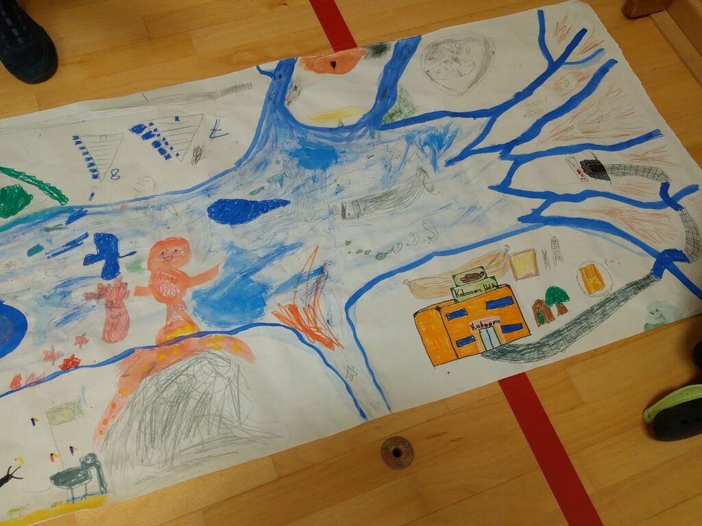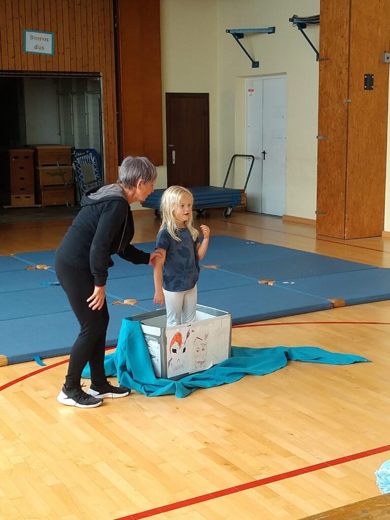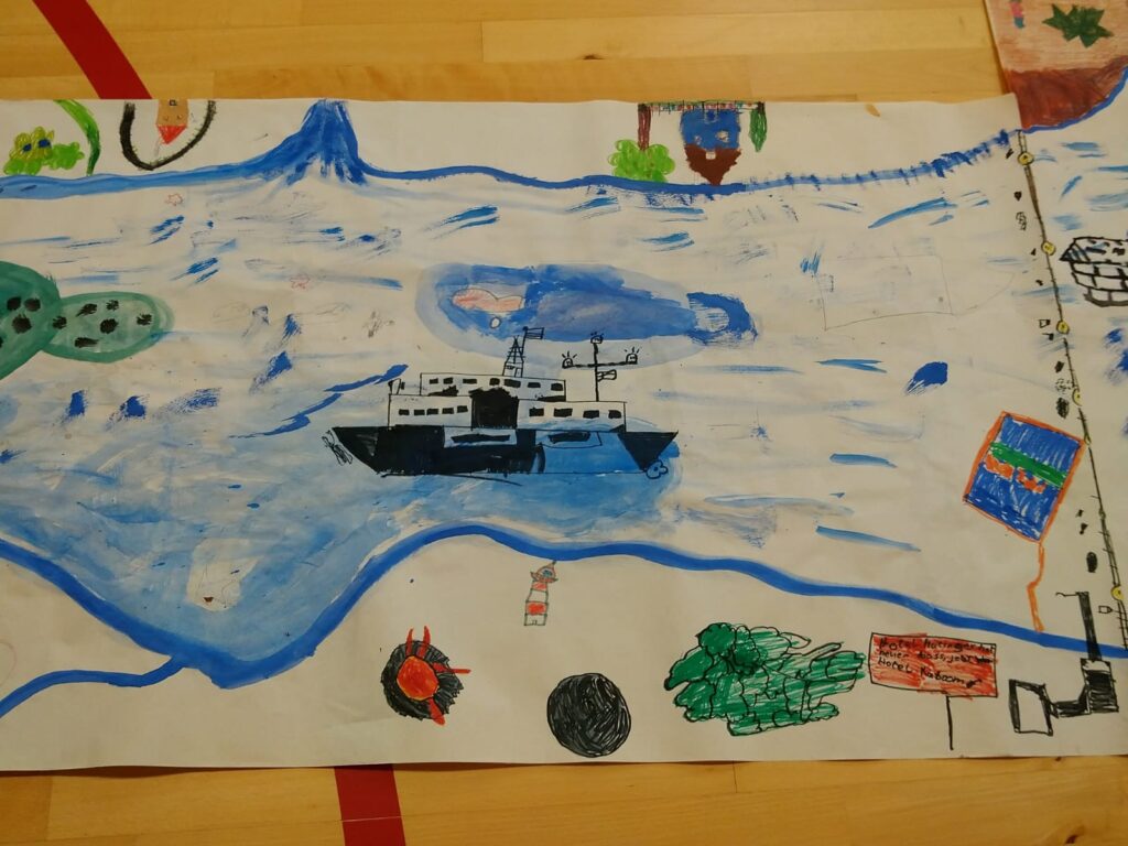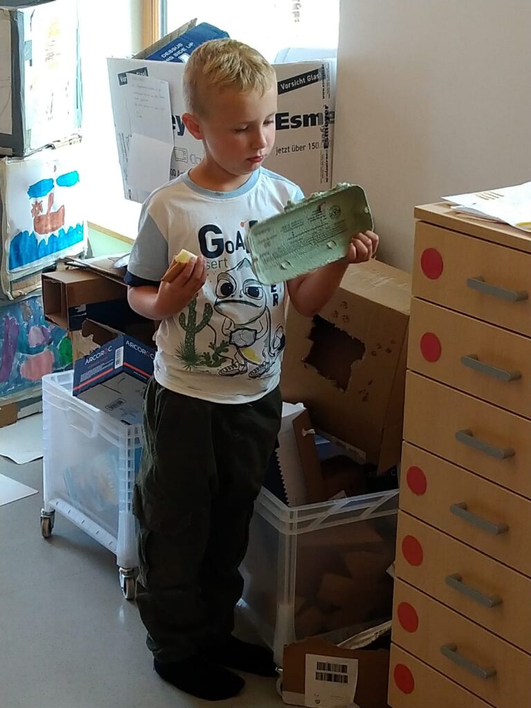 Für einen Jungen (arabischer Herkunft und einer körperlichen Beeinträchtigung) haben wir eine besondere Rolle für die Theaterperformance entwickelt. Er spielte mit viel Freude einen Schiffsingineure und blühte in dieser Rolle richtig auf. Sein Boot hatte er, gemeinsam mit den anderen aus einem recycelten Karton gebaut.