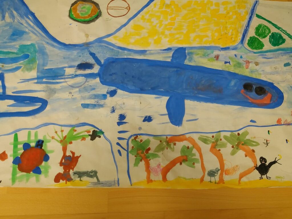 Die Kinder haben alle mit großem Engagement und viel Kreativität, unter Verwendung von recycelten Materialien, gemalt und gebastelt. Ihre Kunstwerke konnten zur Präsentation bestaunt werden.